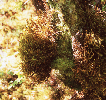 Í regnskógum hitabeltisins og heittempruðu beltanna er algengt, að mosar hangi sem skegg niður úr trjánum. Mosinn festir sig í berki á stofnum og greinum, en hann dregur enga næringu úr trjánum, sem hann hangir á. Allt vatn og önnur ólífræn efni fær mosinn því eingöngu úr regnvatni.