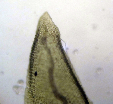 Frumuveggir í miðju blaði mjög þykkir, svo að frumur eru stjörnulaga. Á hverri frumu er lág varta beggja megin. Frumur við blaðgrunn eru þó aflangar með slétta veggi, brúnar á lit. Blaðgrunnur er þó nokkur frumulög á þykkt.