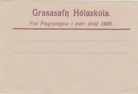 Fróðlegt er að sjá, að Þingeyingar hafa gefið grasasafn í Hóla 1908 og látið prenta sérstaka flórumiða af því tilefni. Skyldi það vera til enn þá?