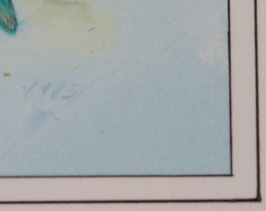 Þá var komið að prentun. Á þessum tíma var ekki hægt að skanna eða mynda svona stóra mynd í prentsmiðjunni, og því gekk það ekki eins vel og til stóð. Gerðar voru margar tilraunir, en ekki tókst að losna við bláa umgjörð. Eftir á að hyggja kemur þetta miklu betur út, þar sem bláa umgjörðin lokar myndinni. Misfellur eru því ekki ætíð til lýta.