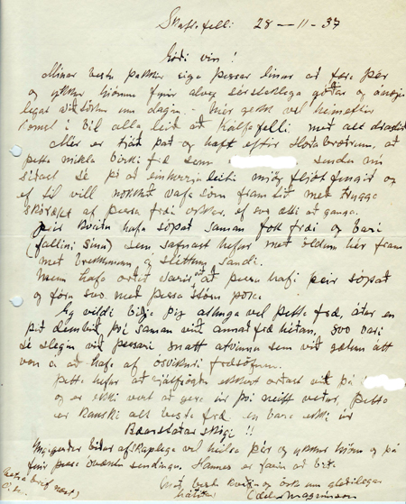 Þá gerist það haustið 1937, nánar tiltekið 28. nóvember, að Oddur Magnússon í Bölta skrifaði föður mínum bréf, þar sem í stendur meðal annars þetta (nöfn tekin út og X sett í staðinn):