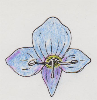 9 Króna hvít eða ljósbláleit með dökkar æðar og gulan blett á neðri vör …. augnfró (Euphrasia)