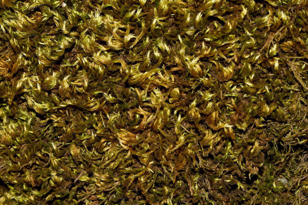 Homalothecium lutescens er uppréttur mosi og gulgrænn á lit. Ljósm. ÁHB