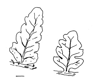 1. Blöð annaðhvort hærð eða flosug ofan við stilklið; miðstrengur blaðs brúnn-svartur, mjög sjaldan ljósrauður …. 2