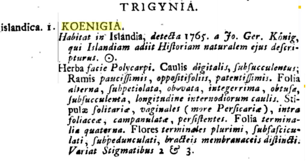Hér á landi vex aðeins ein tegund, Koenigia islandica L.