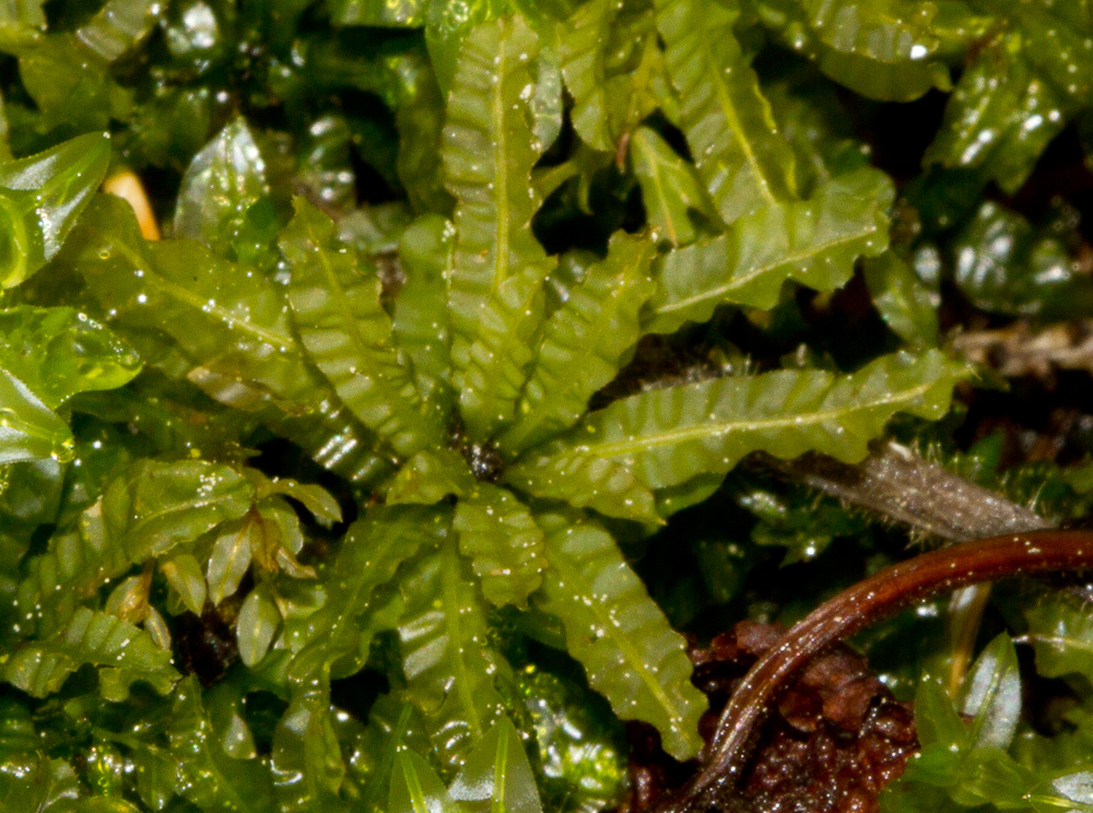 6 Tvíkynja. Stöngull án rætlinga ofan til. Frumur við rif ekki áberandi stærri en við blaðjaðar. Geldsprotar jarðfastir í endann……. P. rostratum