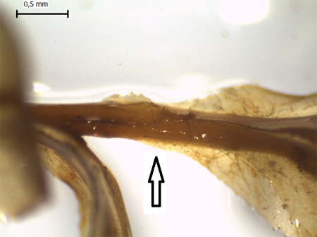 Frumur eru aflangar, um fjórum sinnum lengri en breiðar og í greinilegum skáröðum. Veggir þunnir og holóttir, engar hornþykkingar. Við jaðar eru 2 eða þrjár frumuraðir af lengri og mjórri frumum en þær mynda mjög ógreinilegan jaðar.