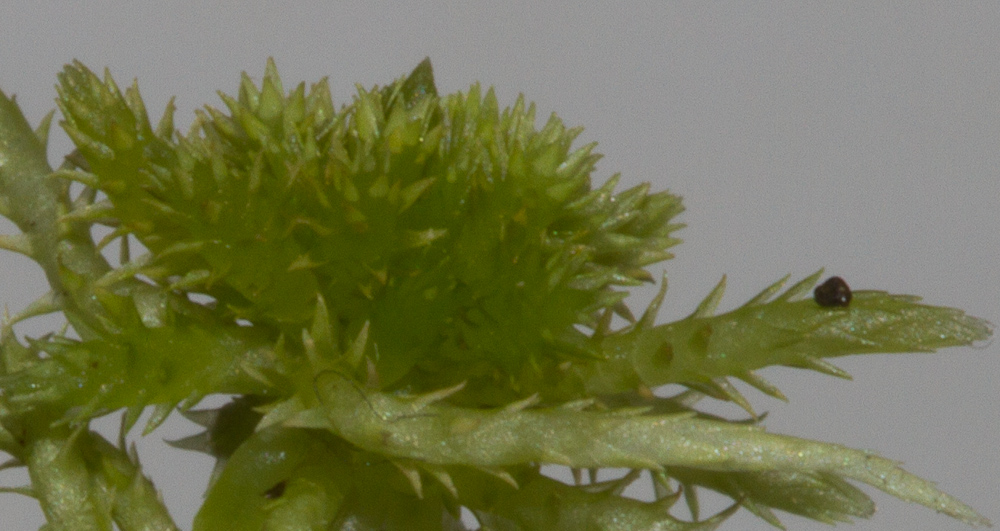Stöngulblöð: 1,2-1,3 x 0,8-1,1 mm; tungulaga; 2-5 frumuraðir af jaðarfrumum, breikkar ekki neðst. Blaðoddur þverstýfður eða bogadreginn, trosnaður.