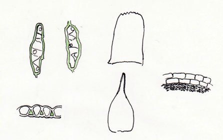Stöngull: Grænn eða brúnn; klæddur 2-4 lögum af glærfrumum; 0,5-0,7 mm að þvermáli.