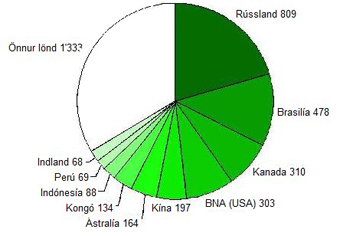 Á meðfylgjandi skífuriti er sýnd skipting skóglendis meðal tíu stærstu skógarlanda jarðar.