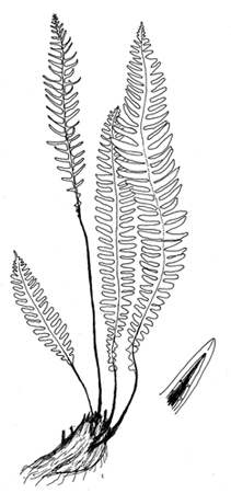 Jarðstöngull uppréttur, grófur. Blöð af tveimur gerðum. Grólausu blöðin skinnkennd og sígræn; útafliggjandi. Stilkur stuttur (um 2 cm), dökkbrúnn með miðgróf á efra borði, flosugur. Blaðka mjó, lensulaga, kambskipt með þétta, nærri gagnstæða, aflanga bleðla. Bleðlar heilrendir með niðurorpnar rendur. Gróblöðin upprétt í miðri þyrpingu, stilklöng, fá og lengri en hin grólausu; Bleðlar eru striklaga og gisstæðir. Ekki sígræn og þroskast ekki alltaf. Gróblettir í tveimur röðum á neðra borði, renna saman, svo að þeir líta út sem svört strik að lokum. Gróhula striklaga. Á stundum eru engin gróblöð, en tegundin er auðþekkt án þeirra.