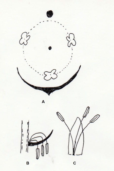 3 Öx mismunandi, sum eða öll leggjuð, annaðhvort með karlblóm eða kvenblóm, sum öx með hvoru tveggja ….. Lykill C