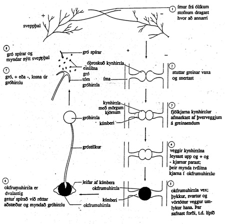 „Eins og þegar er getið, hafa sveppir lengi verið álitnir fremur dularfullar verur, sem stafar af því meðal annars, að mestöll lífsstarfsemi þeirra fer fram niðri í moldinni, hulin sjónum vorum og jafnvel venjulegum rannsóknatækjum.”