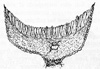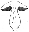 Langskurður af ungum og þroskuðum hattsveppi.. 1. heildarhula (myndar hattflyksur og skeið), 2. fanhula (myndar hengsli og kraga), 3. fanir, 4. stafur, 5. hattur.
