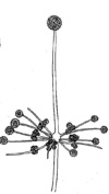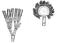 Kóníðugró á pensillínsveppi (Penicillium sp.) og bursthýi (Aspergillus sp.)