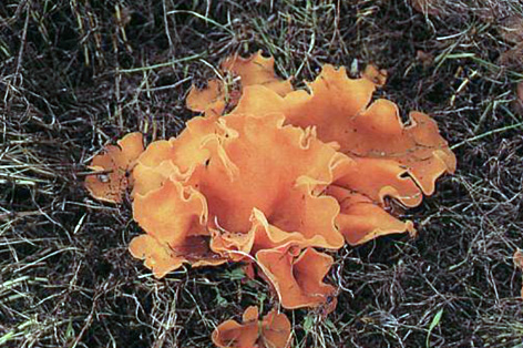 Skarlatsdiskur (Aleuria aurantia (Fr.) Fuckel). Stjórnarsandi, 6. september 1997. Ljósm. ÁHB.