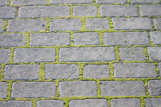 Á hinn bóginn eru mun færri tegundir, sem ná að vaxa á milli gangstéttarhellna. Þar eru einkum tvær tegundir ríkjandi. Annars vegar er það hlaðmosi, Ceratodon purpureus (Hedw.) Brid., og hins vegar silfurhnokki, Bryum argenteum Hedw.